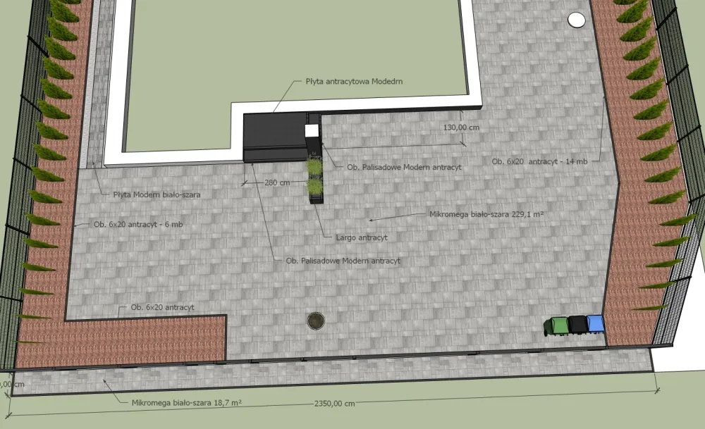 W ramach działu Aranżacje oferujemy profesjonalne usługi projektowania zagospodarowania przestrzeni z wykorzystaniem kostki brukowej. Nasi doświadczeni projektanci tworzą indywidualne koncepcje, które łączą funkcjonalność z estetyką, dostosowane do Państwa potrzeb i preferencji. Dzięki realistycznym wizualizacjom 2D i 3D mogą Państwo zobaczyć planowaną aranżację jeszcze przed rozpoczęciem prac, co pozwala na pełne zadowolenie z finalnego efektu.